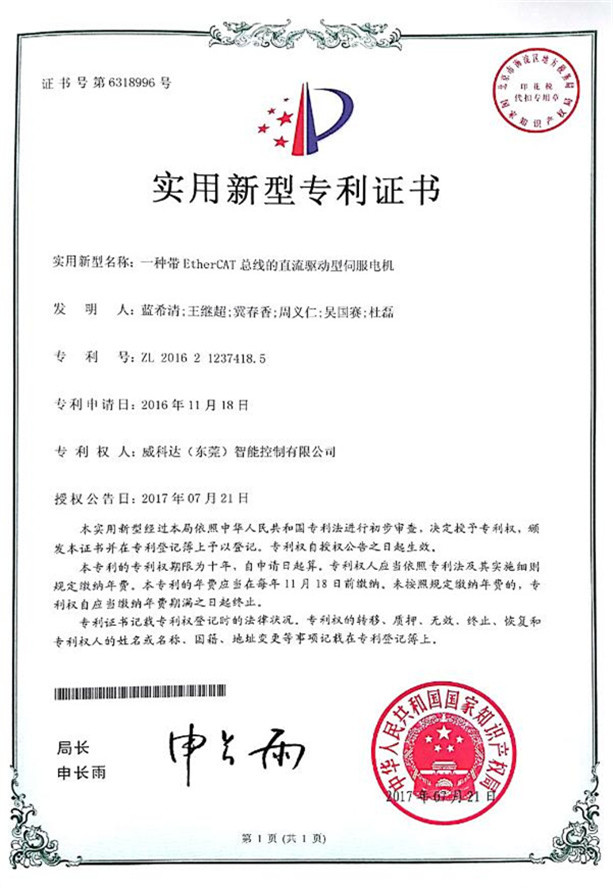 鏈刀伺服驅動裝置專利證書